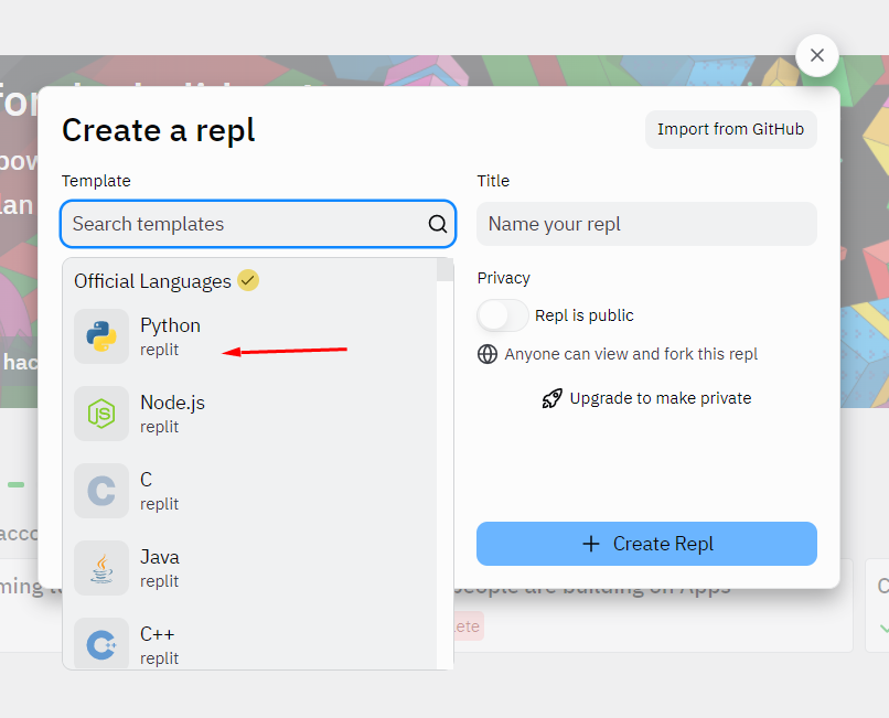 우선 이곳 저곳 다니면서 인터넷을 뒤적거리면서 2~3일간 알게 된 부분은 저와 같이 비전공자 IT코딩독학을 하기 좋은 코딩툴(?)이라고 해야할까요? Replit이라는 것이 있었습니다.