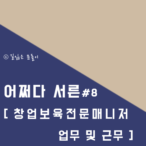 안녕하세요. 길잃은문돌이입니다. 제가 요즘 어쩌다 서른 시리즈를 개제하고있는데, 많은 분들이 창업보육전문매니저에 관심이 있으신거 같더라구요 은근 많이 들어오시고 사실상 저의 글 대