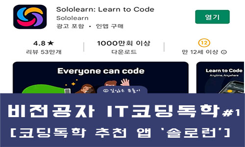 안녕하세요 길잃은 문돌이입니다. 오늘은 천생 문돌이인 저는 지금도 계속 IT공부를 하면서 제가 느끼고 아! 이거 정말 괜찮다 라고 생각하는것들을 알려주고자 비전공자 IT코딩독학 시리즈를 만들고 있답니다. 오늘은 코딩독학 추천 앱